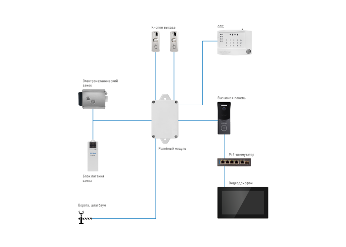 | Управление замком | Электромеханическое реле Н.Р./Н.З. (2 шт.) 8A, DC 24В 10A, AC 250В |