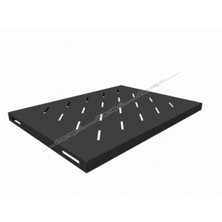 Полка стационарная предназначена для установки оборудования весом до 20 кг в напольных телекоммуникационных шкафах и стойках. Выполнена из прочного стального листа и покрыта качественной ударопрочной-порошковой краской черного цвета (RAL 9005). Для облегчения конструкции и обеспечения естественной вентиляции за счёт конвекции на поверхность полки имеет перфорацию. Установка полки осуществляется за счёт её крепления к монтажным профилям шкафа в четырёх точках. Полка предназначена для шкафов габаритной глубиной 600 мм. Полка поставляется в индивидуальной картонной упаковке.