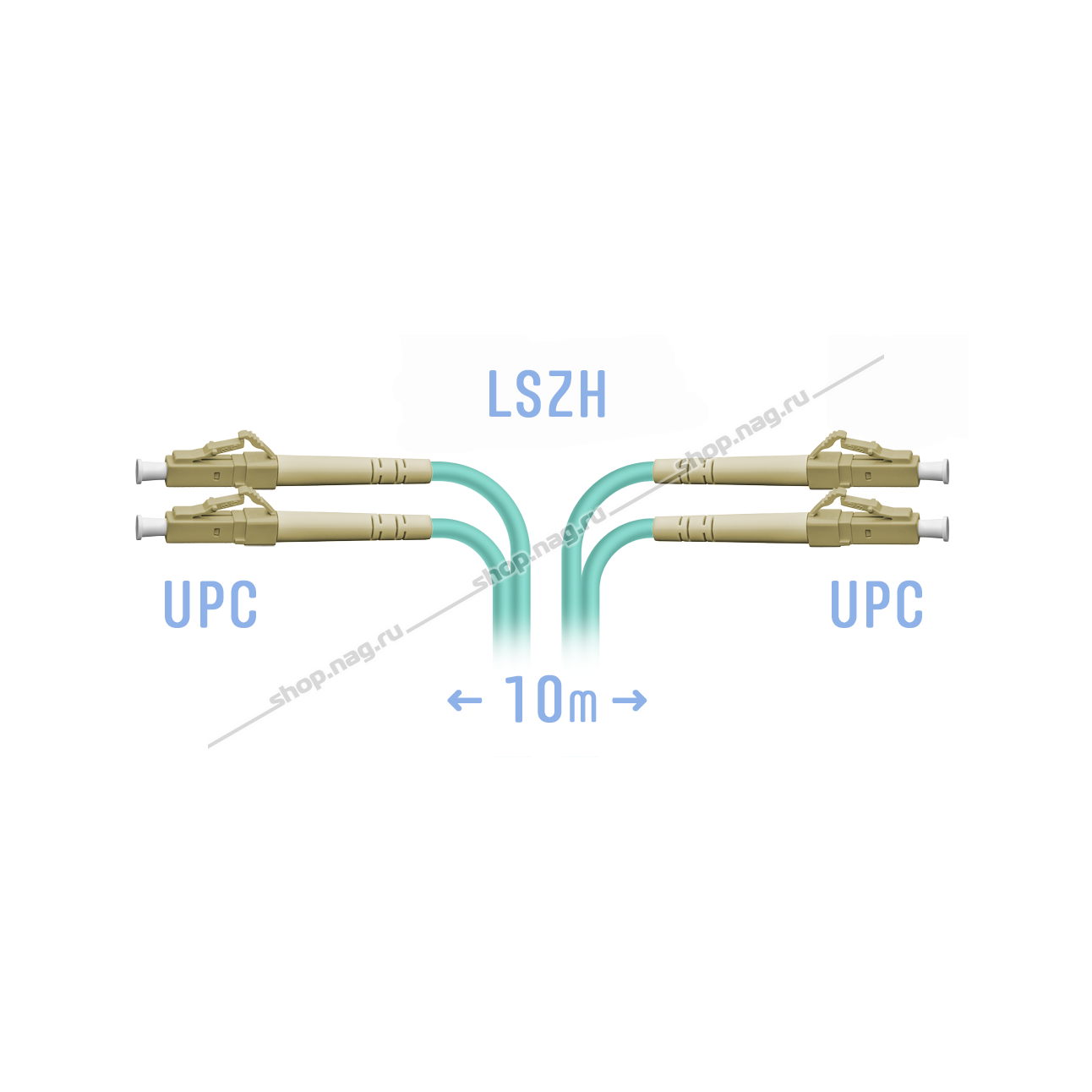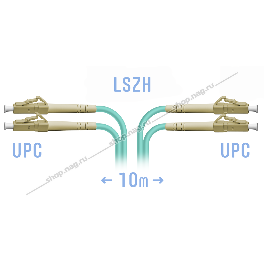 Патчкорд оптический прямой LC/UPC - LC/UPC, МM (OM3), Duplex, 10 метров