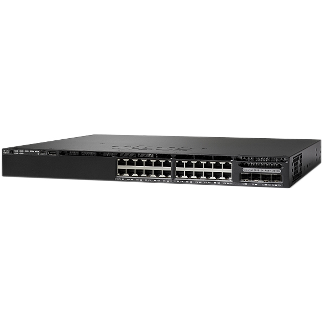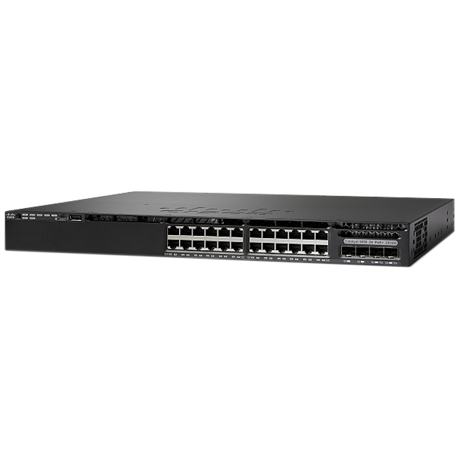 | WS-C3650-24PS-S | Стекируемый коммутатор, 24 порта 10/100/1000Base-T PoE+, 4 порта 1G (SFP), блок питания 640 Вт, IP Base |