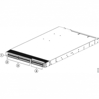 32 фиксированных универсальных порта которые могут быть сконфигурированы как 1- 10GE либо Fibre Channel (SFP+);