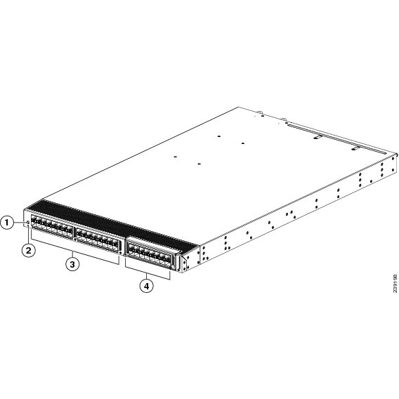 Chassis includes 32 fixed ports, Front-to-Back Airflow, 2 750W AC Power Supplies, Fan Trays, 1 Expansion Slot