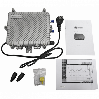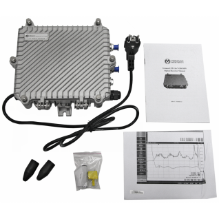 - Современный GaAs выходной усилитель обеспечивает высокий выходной уровень (2 RF-выхода по 114 дБмкВ или 1-RF выход 116 дБмкВ);