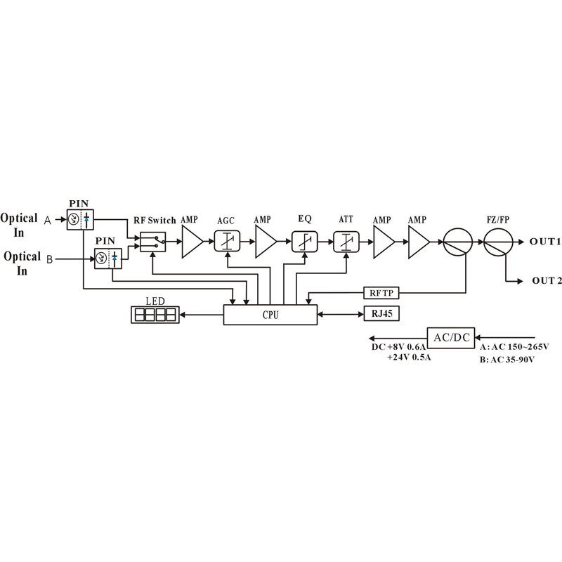 - Улучшенная система АРУ по входному оптическому сигналу (есть возможность задать начальную точку АРУ -9/-8/-7 дБм);