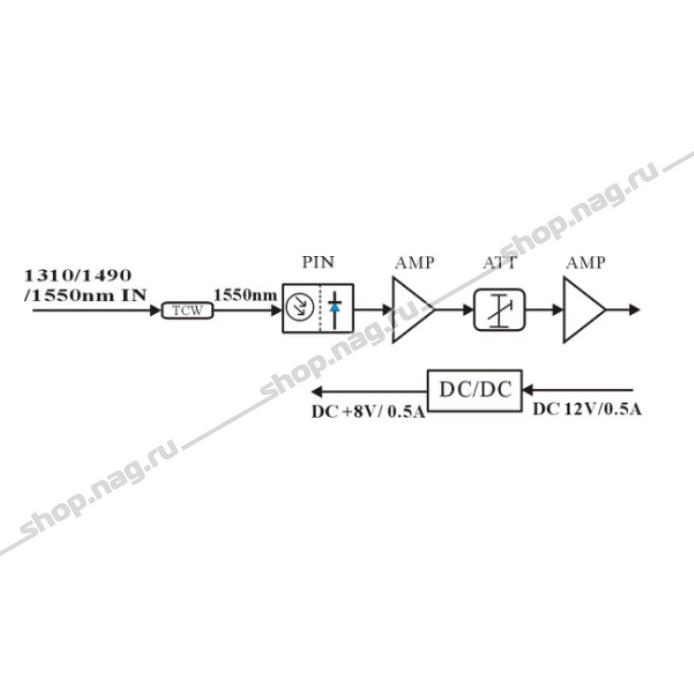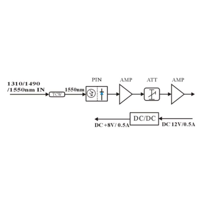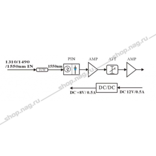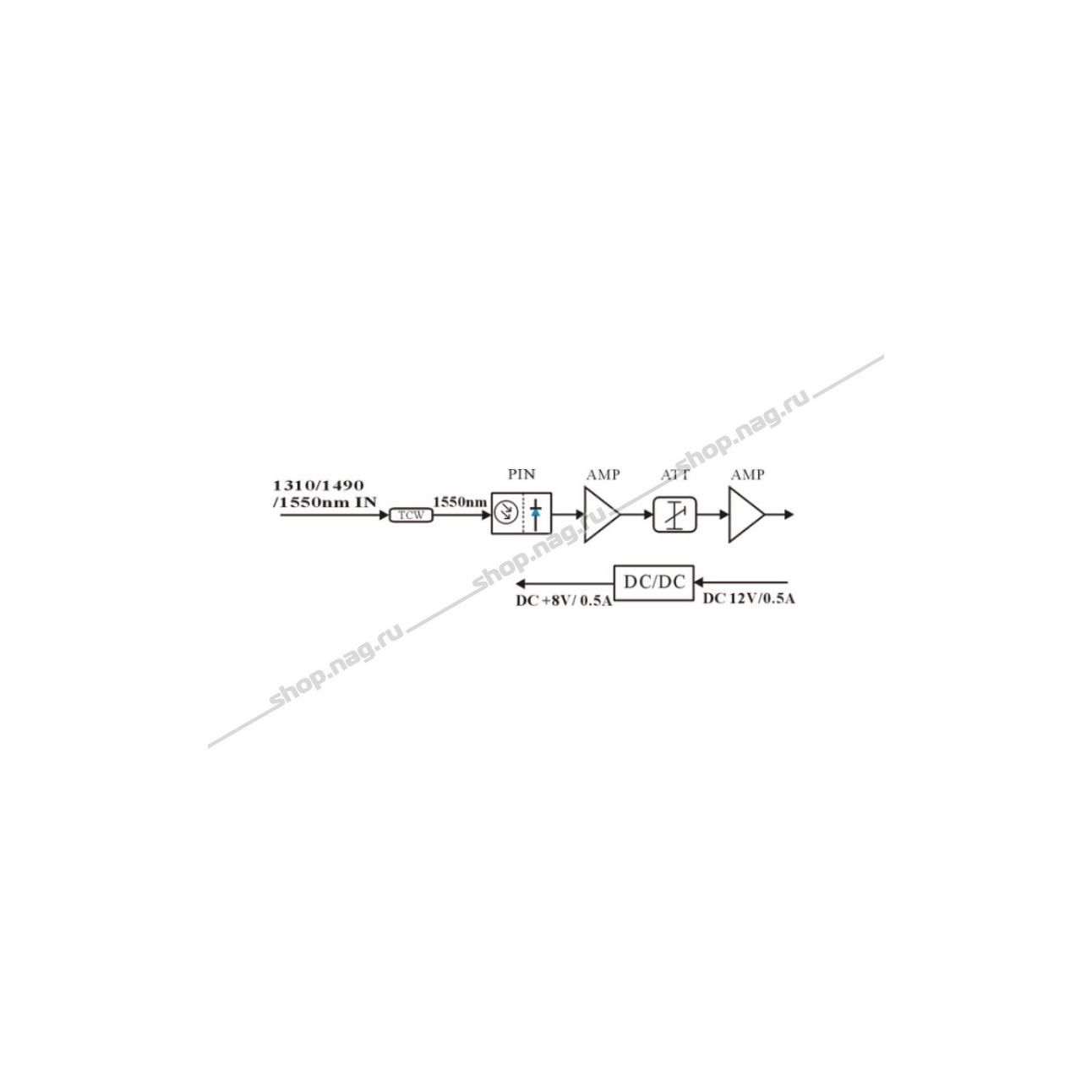 • Возможность работы с низкими уровнями оптической мощности до -10дБм. (Сохраняет допустимые параметры сигнала при уровне на входе до -15дБ включительно.)