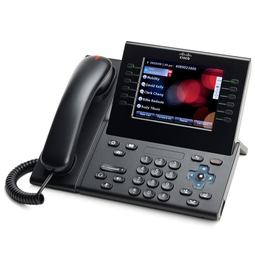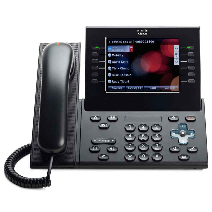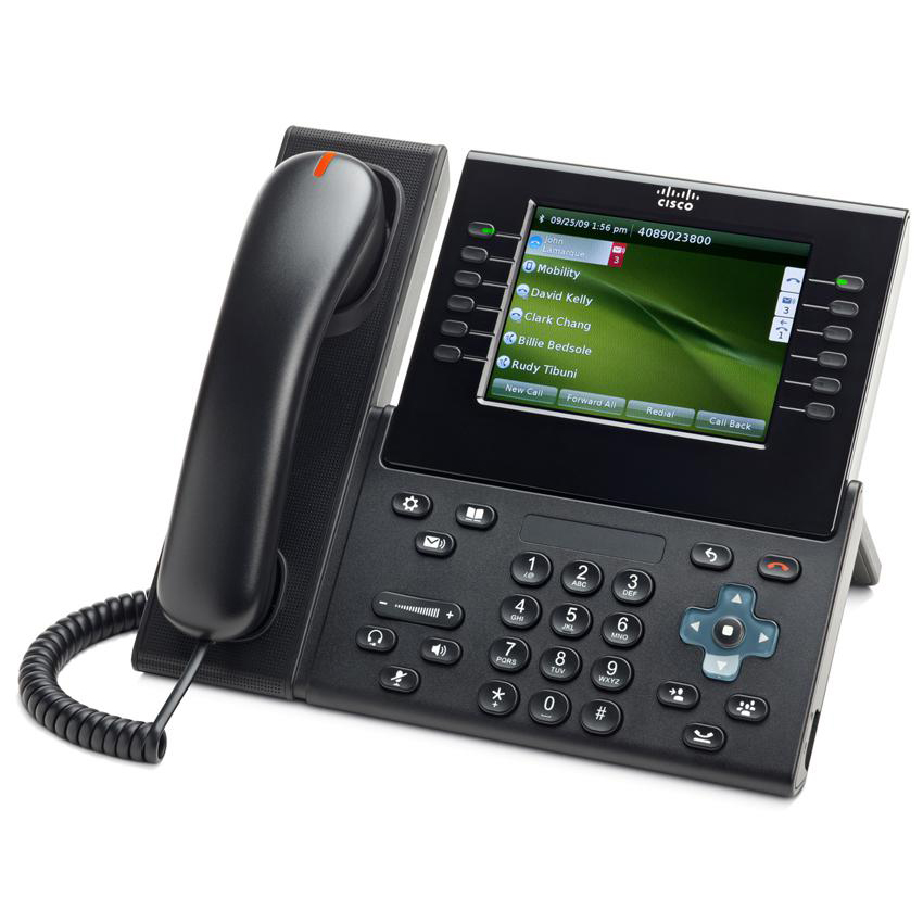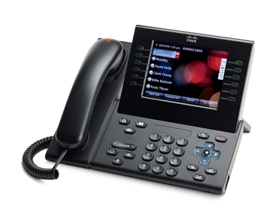 Видеотелефон IP Cisco CP-9971. Протоколы: SIP, SCCP. HD-звук, сенсорный цветной LCD дисплей, громкая связь, разъём для гарнитуры, PoE 802.3af, WiFi 802.11 a/b/g.
